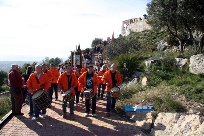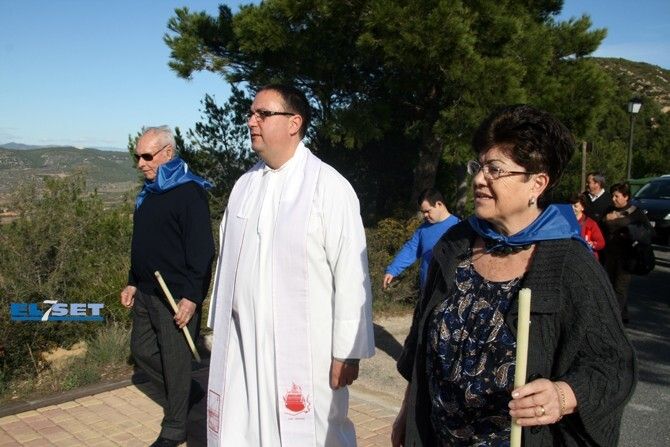 Un gran número de participantes han subido a pie hasta la ermita, grupos de amigos y familias, que han disfrutado a su llegada a la cima del moscatel y “rollets” que ofrecían los mayorales.