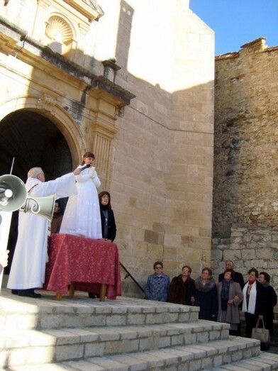 Després, ha tingut lloc la missa a l'Ermita i a l'eixida, els Quintos, alguns joves de la població i l'Alcalde de Portell, Álvaro Ferrer han repartit el "panoli" als assistents. ![[Img #16534]](upload/img/periodico/img_16534.jpg)