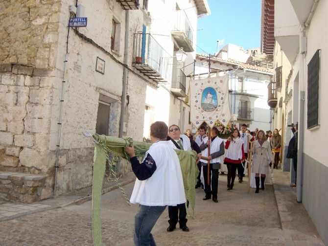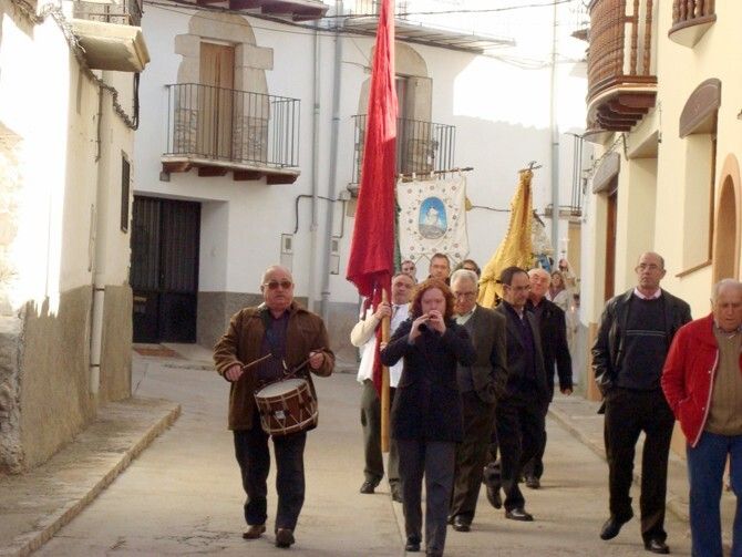 Després, ha tingut lloc la missa a l'Ermita i a l'eixida, els Quintos, alguns joves de la població i l'Alcalde de Portell, Álvaro Ferrer han repartit el "panoli" als assistents.