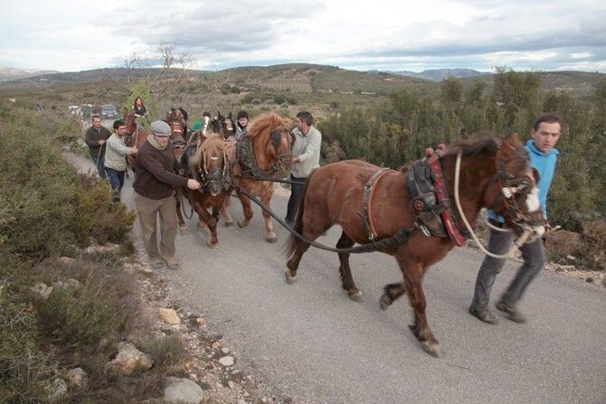 Los mayorales de la fiesta de Sant Antoni de Albocàsser, con la ayuda de numerosos voluntarios, ya han preparado el roble y la encina para "Les Rossegades" del próximo sábado. Después de un día de trabajo los árboles han sido arrastrados hasta el pueblo siguiendo el método tradicional mediante caballerías guiadas por expertos arrieros.