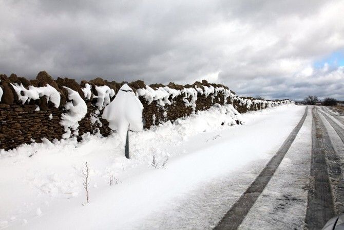 Alli s'han format plaques de gel a la carretera. La neu ha caigut amb més