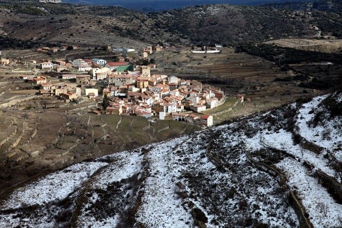 neu ha arribat este matí a Portell. Han quedat blancs alguns teulats del poble.