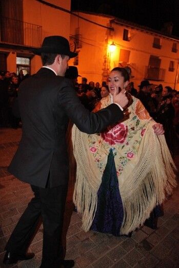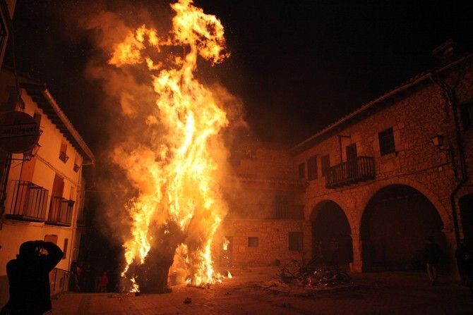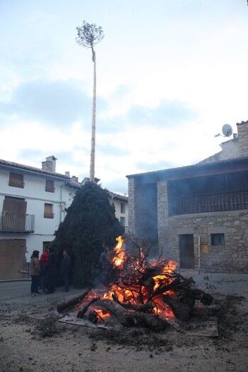 Por la noche, tras una multitudinaria cena en el polideportivo los mayorales danzaron el Ball Pla. Tras el baile llegó la representación de Sant Antoni, "l'abueleta" y "els dimoniets".  Siguiendo el sonido que marcaban la dulzaina y el tambor los personajes desfilaron entre los centenares de personas que se encontraban en la plaza. Con la presencia de estos personajes se prendió fuego a la hoguera que quemó de manera espectacular. De este modo se puso el punto y final a la celebración, con la confianza que en 2014 haya mayorales que se hagan cargo de la organización de los actos.