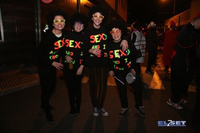 Destacaban los que iban disfrazados del juego de Twister, de producción artesanal, mientras que el grupo más numeroso lo formaban unos festivos vaqueros.
