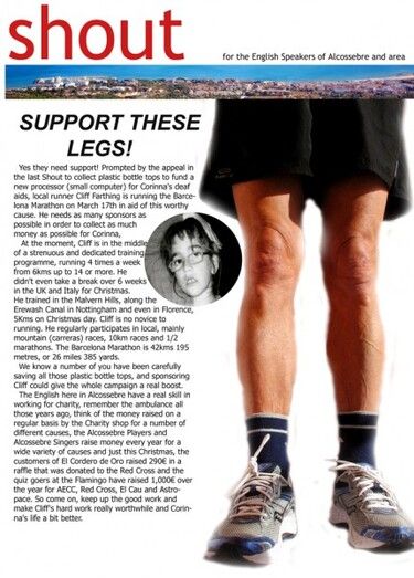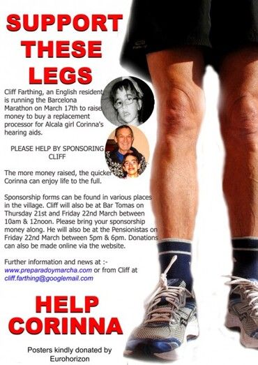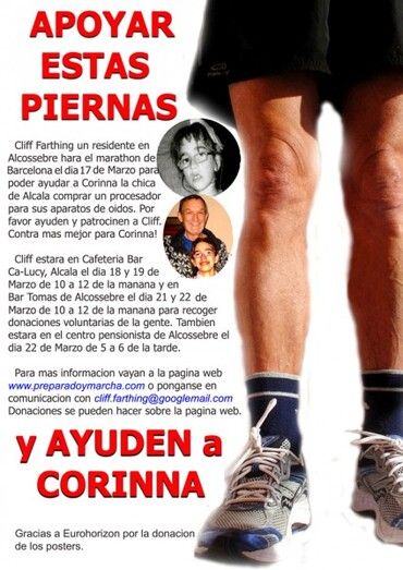 Un británico residente en Alcossebre, Cliff Farthing, participará en el Maratón de Barcelona el próximo 17 de marzo para recaudar fondos a favor de Corinna, una joven de Alcalà de Xivert que necesita un procesador para sus aparatos auditivos, puesto que sus implantes cocleares han quedado obsoletos con el paso del tiempo y es difícil encontrar repuestos.