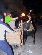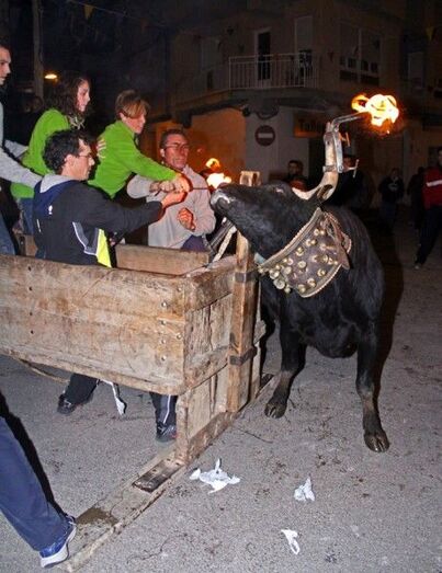Por la noche los emboladores prepararon la faena para que una joven de la junta encendiera las bolas al último bou embolat de estas fiestas y seguidamente se celebraba el correfoc a cargo del grupo “Kagaferro”, que finalizó con un gran castillo de fuegos en la calle colón.