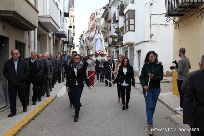 Albocàsser ha cerrado la programación de Semana Santa con la procesión del Encuentro. A las 9h de la mañana la iglesia ha acogido la celebración de una misa. A continuación se han formado dos procesiones que han confluido en el Pla de la Font. Allí se han desarrollado los saludos entre peanas. La Agrupación Musical Santa Cecilia ha acomapañado la celebración, que ha contado con la presencia de vecinos, clero y corporación local.