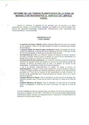 Segons Romero, “el servici que presta FOBESA a penes es diferència de la temporada baixa de l'alta a posar un únic operari més agranant i es neteja amb neteja a pressió durant només 4 hores més”.
