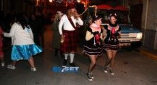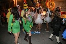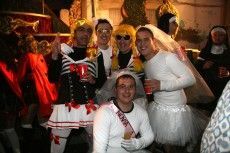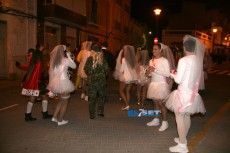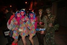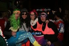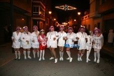 [Img #30450]La noche del viernes la tradición marca que cualquier disfraz es válido para recibir a Su Majestad Carnestoltes, de modo que se echa mano de lo primero que se encuentra, bien sea un disfraz reutilizado de años anteriores o uno improvisado con el fondo de armario de la abuela. En un ambiente desenfadado, las indumentarias contrastan poderosamente con los que se lucirán en la grande del carnaval el sábado. De todos modos, vecinos y visitantes ya derrochan en los primeros compases de la fiesta imaginación en sus atuendos.