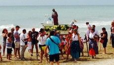 Tras la actuación del Grupo de Danzas de Cabanes ayer por la tarde y el vino de honor ofrecido por las Amas de Casa de La Ribera, la jornada del domingo 29 comenzó a las siete de la mañana, con la despertà y el reparto de cintas para la romería desde la iglesia hasta la playa de Torre la Sal.