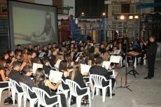 Batucada infantil al pati de les antigues escoles de Vilafamés