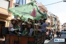 Los jóvenes participantes desfilaron sobre carros, motocultores y a pie por las calles de Cabanes, que se llenaron de curiosos para contemplar la colorida comitiva. El recorrido estuvo amenizado por varias charangas de la comarca, compuestas por músicos de Les Coves, Vilafamés o Salzadella, entre otras localidades.