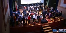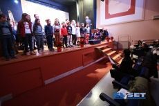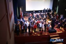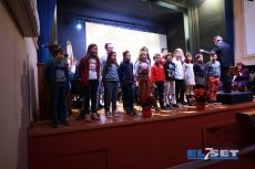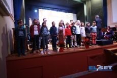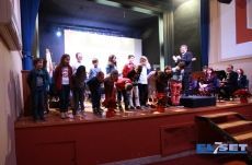 En este punto del repertorio subió al escenario la Coral de la Escuela de Música para cantar junto a la banda los villancicos “Arre borriquito”, “Hacia Belén va una burra” y “Campana sobre campana”, interpretados con gran desparpajo por estos niños y niñas.
