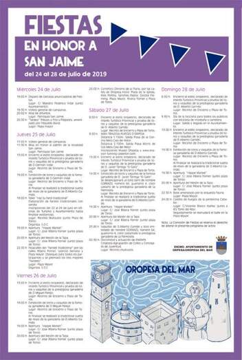 La tarde continuó con la colorida procesión por el mar, a la que se sumaron más de una veintena de embarcaciones que recorrieron la costa, pasando por la emblemática Torre del Rey y el faro siguiendo la barca engalanada en la que se trasladó la imagen de la Virgen. De vuelta al puerto, la máxima representante de las fiestas del municipio fue la encargada de realizar la tradicional ofrenda de flores con un ramo que lanzó al mar que sirvió para rendir pleitesía a la patrona de los marineros. La tarde culminó con una multitudinaria torrá de la sardina, en la que se repartieron unos 120 kilos de este pescado para todos los asistentes a esta jornada cargada de emoción en la que los oropesinos mostraron su fervor y pasión por la Virgen del Carmen.