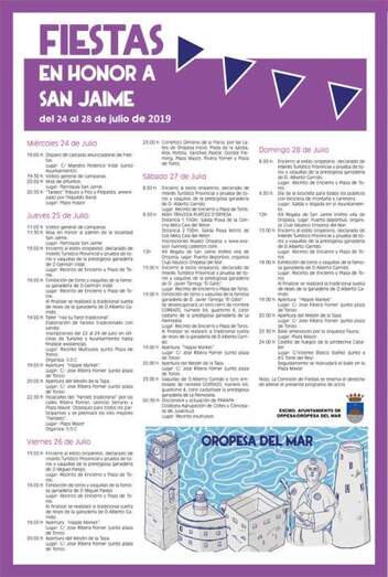 Oropesa del Mar  inicia hoy las fiestas en honor a San Jaime, que trascurrirán hasta el próximo domingo 28 de julio. Las fiestas arrancaran esta misma tarde con el tradicional disparo de carcasas anunciadoras de las fiestas y seguidamente tendrá  lugar uno de los actos novedosos de estas fiestas “el tardeo”. La actuación en forma de tributo a Fito y los fitipaldis en la plaza mayor;