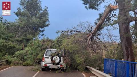El temporal Hortense deja daños en fachadas y árboles caídos con récord de rachas de viento de 145 km/h en Vilafamés