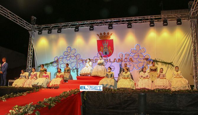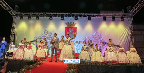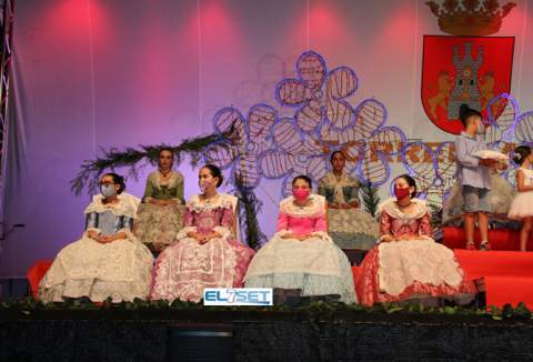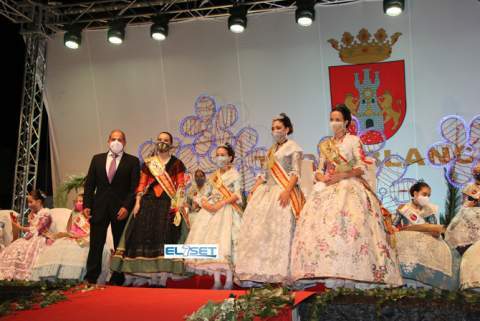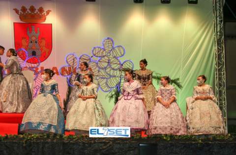 La alcaldesa, Josefa Tena, impuso las bandas a las componentes de ambas Cortes de Honor. De ese modo, la Reina Mayor, Paula Salguero Rispau, acompañada por Ferran Salguero Rispau, tiene como Damas de su Corte de Honor a Paula Salvador Espinosa, acompañada por Marc Ribes Barreda; Ce?lia Espejo Gil, acompañada por Marc Bort Lucas; Ju?lia Bort Lo?pez, acompañada por Marc Grin?o Capdevila y Carla Zambrano Casanova a quien acompaña José Manuel Casanova Sa?nchez.
