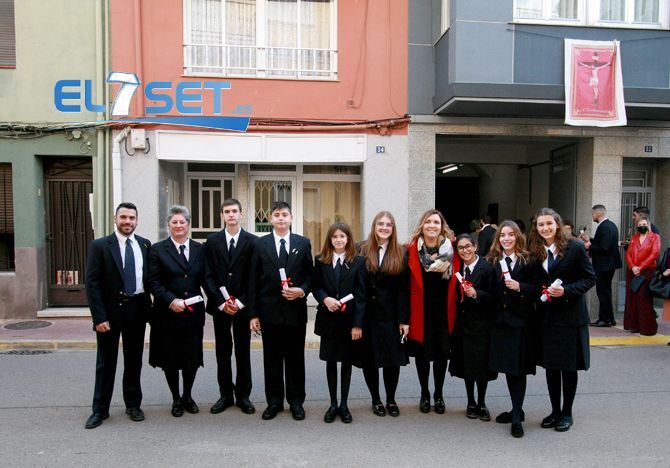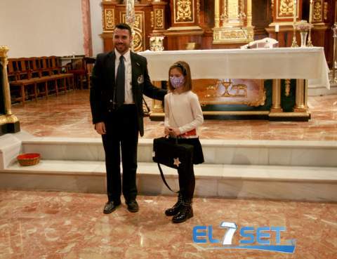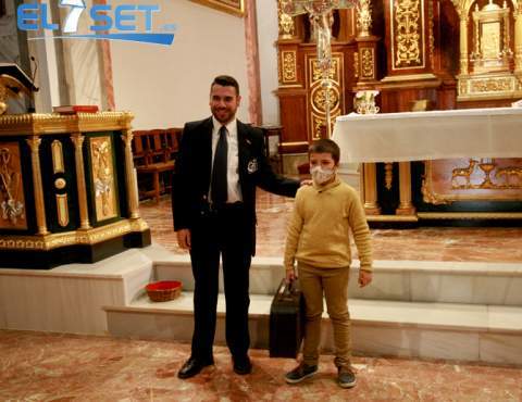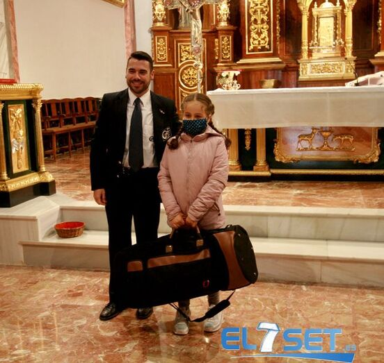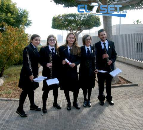 Al finalizar el oficio religioso, tuvo lugar la entrega de los instrumentos a los estudiantes de nuevo ingreso en la escuela de música. Víctor Bellés fue llamando a los nuevos estudiantes para recibir su instrumento musical ante la mirada del director de la banda, Rubén Gascó Mulet, y el presidente, Carlos Rodrigo. De ese modo fueron pasando Gal·la Prada Martínez (clarinete), Saray Marín Vidal (clarinete), Irene Fabregat Torres (trompeta), Pau Fernández Fabregat (trompeta), Marc Prades Val (saxo), Ainoa Monfort Cabanes (flauta), Carmela Balmes Agut (clarinete), Martina Pradas Reñé (saxo), Rahal Benejma ICaddi (bombardino), Patricia Cortés Enstratier (saxo), Dante Lafuente Salvador (trombón), Xavi Bort Molner (percusión) y Guillem Rodrigo Climent (percusión).