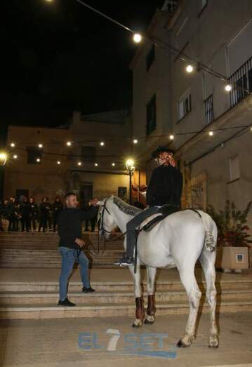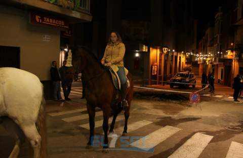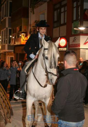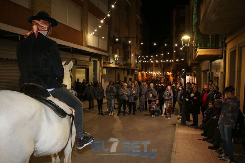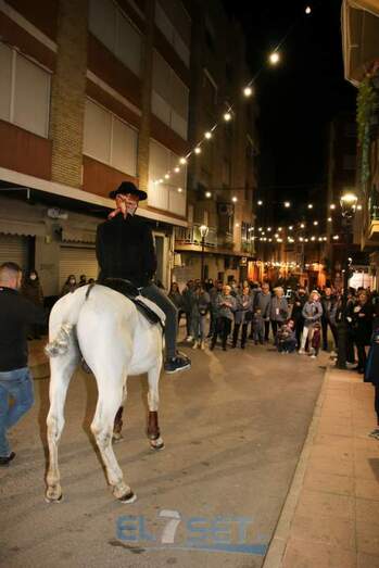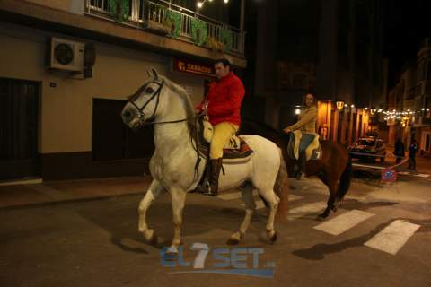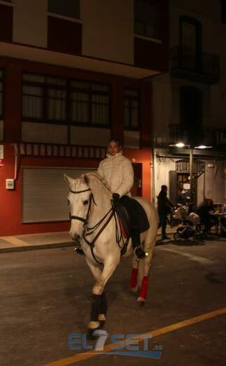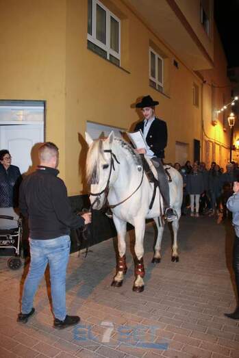 Este año el pregonero, encargado de llevar el anuncio de las fiestas de Sant Antoni a todos sus vecinos, a lomos de “Pilón” un caballo de pura raza española propiedad de Raúl Mansilla, es Sergi Betoret i Martínez, quien daba lectura al pregón escrito en el año 1977 por Consuelo Betoret i Llansola. Acompañado por la música del Grup de Dolçainers i Tabaleters El Senill, la Junta de Fiestas y vecinos, encabezó la comitiva recorría las calles que acogen la fiesta, para después dar paso al encendido de la hoguera, situada en Els Quatre Cantons, cuya quema fue supervisada por Pablo Mendes. Posteriormente, los mayorales procedían al reparto de la coqueta y la tradicional bendición de los animales, a cargo del diácono permanente de la parroquia, Carlos Ribera Mulet.