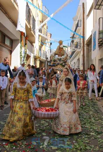 Mucha expectación y muchas ganas de ver salir a la Mare de Deu dels Desamparats por las calles de la localidad. Un numeroso público contemplaba el paso de la procesión a lo largo del recorrido, del mismo modo que ha sido significativa la participación en la procesión religiosa, en la que han tomado parte las autoridades locales, las festeras y vecinos de la localidad ataviados con trajes típicos de la tierra. El colorido de la procesión, que ha contado con un día soleado que ha dado aun más realce a la ocasión, contó con los tradicionales ángeles, pequeños que desfilan junto a la comitiva como marca la tradición, así como con la música de la Asociación Musical Santa Cecilia.