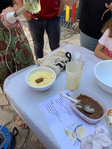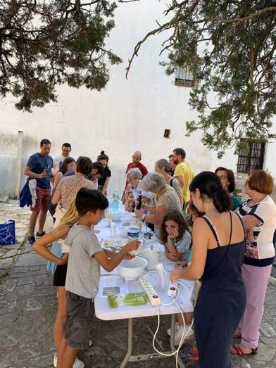 Vecinos y vecinas de todas las edades de Ares elaboraron helados saludables de forma artesanal a partir de un curso impartido por la nutricionista Sheila Amela. A partir de frutos secos, frutas y otros ingredientes naturales se consiguieron realizar varios sabores deliciosos. Una actividad que fomenta una dieta sana sin estar reñida con productos de gran sabor y calidad. El taller se impartió en el parque infantil de la calle Nevera de Ares del Maestrat.