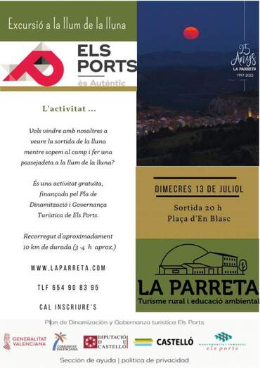 Así pues, para seguir con la programación de la Agenda, esta semana se llevarán a cabo cinco actividades que harán que, tanto vecinos y vecinas, como visitantes de la localidad, disfruten del espíritu villafranquino del verano. La primera actividad tendrá lugar esta tarde a cargo de La Parreta, se hará una excursión a la luz de la luna para poder apreciar esta en su máximo esplendor.