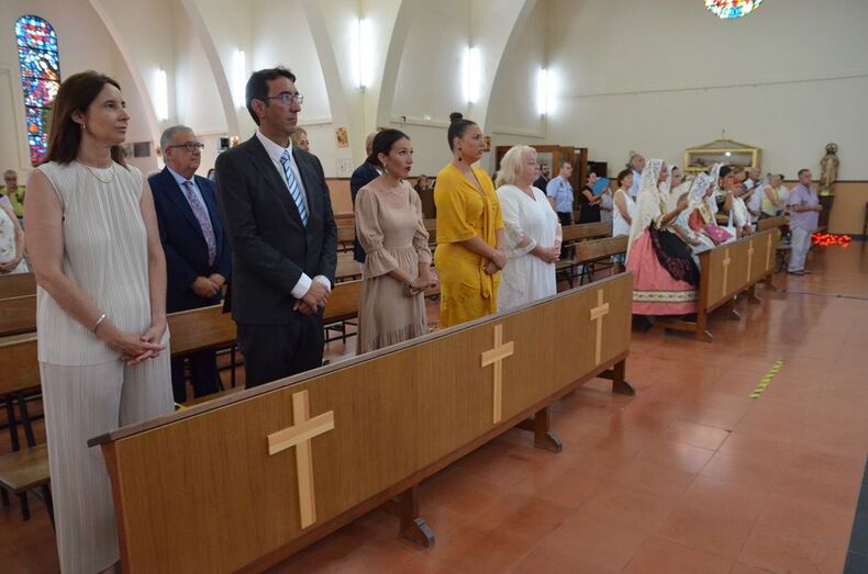La parroquia de San Jaime ha acogido esta mañana la tradicional misa en honor al patrón de Oropesa del Mar, que ha sido oficiada por el párroco local, José Miguel Sala. La reina, Sheila Museros, junto a sus damas y festeros, han partido desde el Ayuntamiento en comitiva, con la alcaldesa, Araceli de Moya, y la concejala de Fiestas, Jennifer Casañ, a la cabeza, acompañadas de una amplia representación de la corporación municipal. La Unió Musical d'Orpesa ha sido la encargada de realizar el acompañamiento hasta la iglesia.
