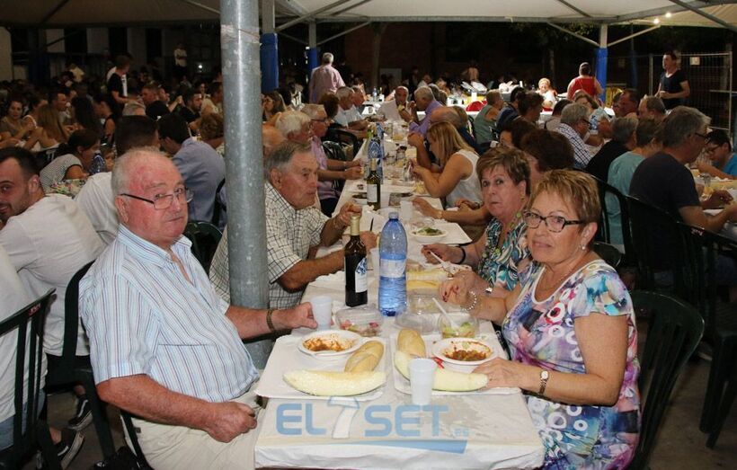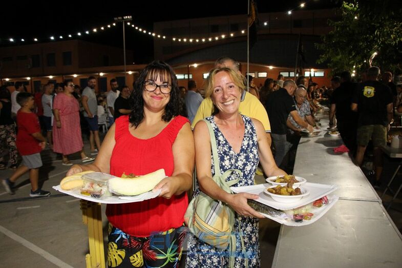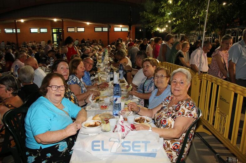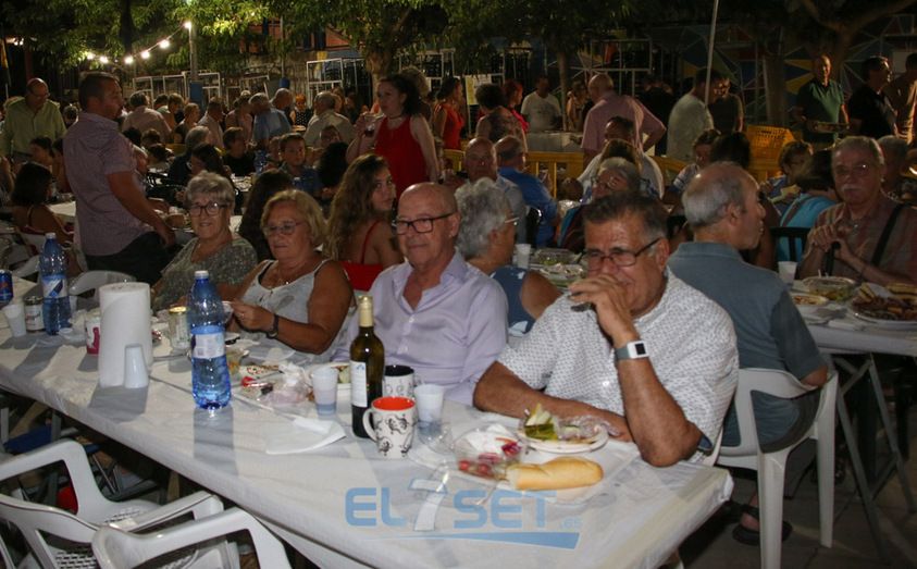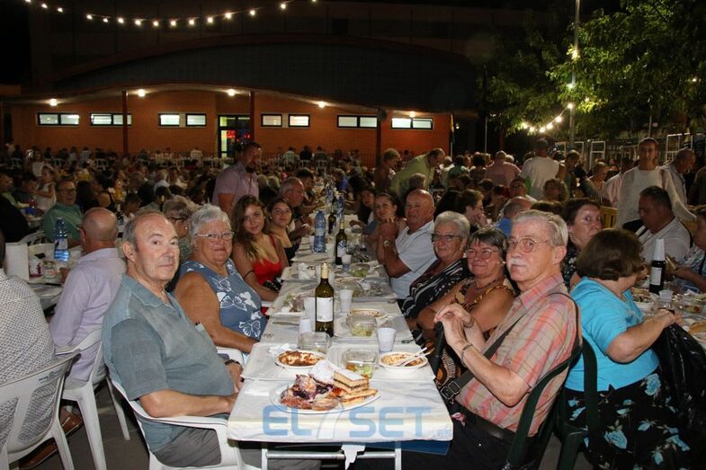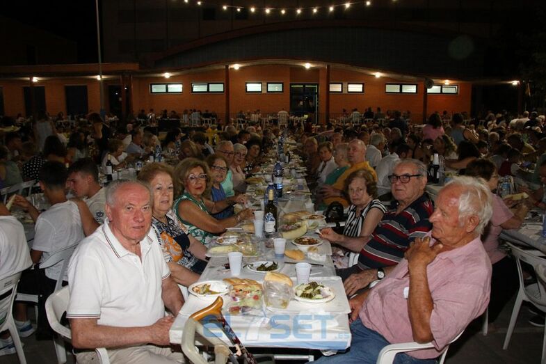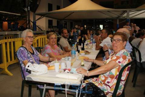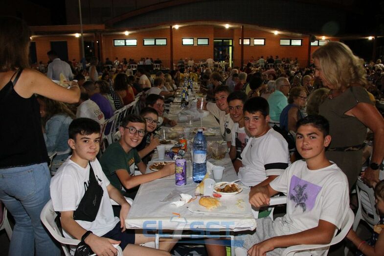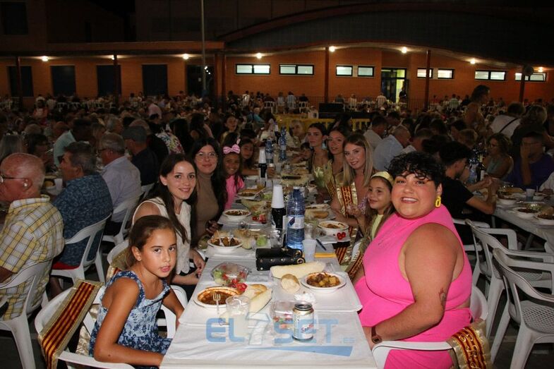 La multitudinaria cena, que contó con la presencia de las Festeras y Festeros, así como de las autoridades locales, se completó con una verbena que puso a bailar a todos para bajar bien la cena y quemar calorías.