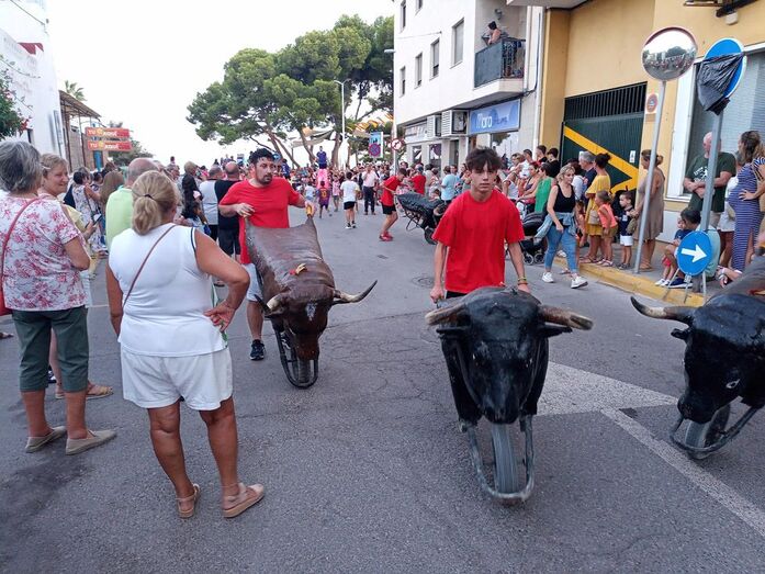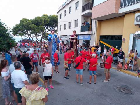 El desfile lo abría la música tradicional de la dolçaina y el tabal a cargo del grupo Lo Xular, con los gigantes Empar y Joan moviéndose al son de las canciones junto a los cabezudos. Las Festeras y Festero derrocharon simpatía a su paso por todo el recorrido para llamar a vecinos y visitantes a participar en las fiestas que comienzan. También despertaron las ganas de fiesta los ritmos festivos los músicos de la Xaranga Cocoloco, que pusieron a bailar al público que presenciaba la cabalgata a lo largo de todo el recorrido. No faltaron a la cita los equilibrios y malabares de Alcozancos, poniendo el punto de diversión y vistosidad al pasacalles, así como las sevillanas del grupo Aires de Alcossebre. Muchas risas, emociones y alguna sorpresa dieron los toros alternativos de El Senyo, que se convirtieron en los grandes animadores de la velada, invitando a niños y niñas que presenciaban la cabalgata a unirse a ellos en un improvisado y divertido encierro en el que todos terminaban felices.