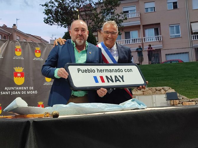 Sant Joan de Moró y la localidad francesa de Nay ya son definitivamente pueblos hermanados. Una delegación del municipio ubicado en los Pirineos atlánticos franceses se ha desplazado hasta población de la Plana Alta para participar en el acto oficial de formalización del proceso de hermanamiento, culminando así la visita que previamente ya hicieron los vecinos de Moró, el 20 de agosto, para tomar parte de la misma ceremonia, pero en suelo francés.