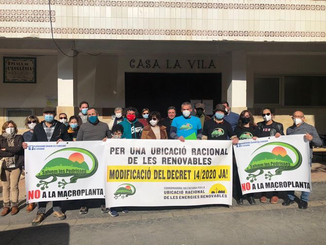 Nuestra petición a los plenarios de los ayuntamientos plantea la derogación de aquellos artículos de nuestros decretos autonómicos que no permiten que sean los ayuntamientos los que puedan decidir sobre las instalaciones de renovables en los municipios. Sorprendentemente, en algunos municipios estas mociones han caído, ante la dejadez de algunos Ayuntamientos a la hora de defender su autonomía y su territorio. Es el caso del Ayuntamiento de les Coves de Vinromà, en la Plana Alta, donde la agrupación independiente que gobierna con mayoría absoluta, votó en contra de la moción presentada por el PSOE y el PP. La postura del equipo de gobierno, es aún más sorprendente en un municipio amenazado por la instalación de una de las mayores plantas fotovoltaicas de la Comunidad Valenciana.