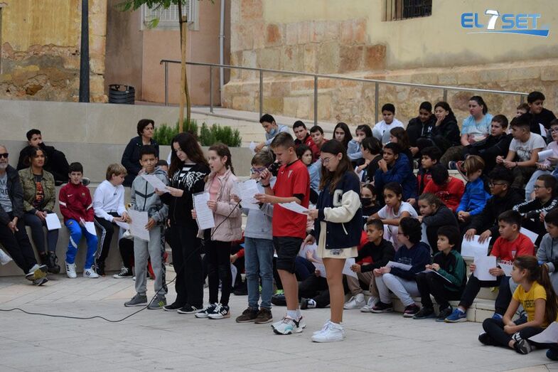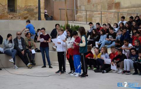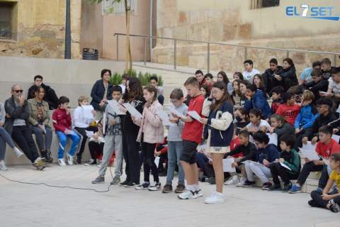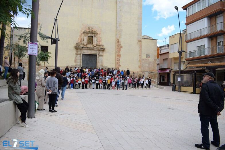 Con las escaleras de la iglesia parroquial de la Plaza Ramón y Cajal como escenario, los estudiantes cantaron a coro el conocido tema de Aretha Franklin “Respect”, adaptando su letra original para rebautizarlo como “Igualtat i Respecte”. Para que el público asistente pudiera unirse cantando se repartieron octavillas con la letra, en la que se hablaba de la necesidad de establecer una igualdad real sin discriminación entre sexos, razas y orientación sexual.