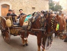 3- Actos preparatorios de la fiesta religiosa y la comitiva: engalanamiento de peañas de San Antonio y Santa Lucía, y de las caballerías para la procesión, portadores de los guiones, estandartes, etc. Y traslado en comitiva de las imágenes de San Antonio y Santa Lucia desde casa el clavario hasta la iglesia parroquial.