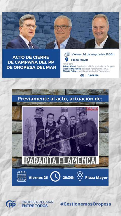 El 28 de mayo “tenemos la oportunidad de conseguirlo entre todos, porque Oropesa es lo único que importa y solo el PP es garantía de estabilidad, trabajo y prosperidad para este pueblo que compartimos”, ha concluido Albert.