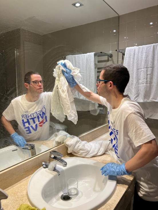 Durante unas horas, la clientela del hotel ha podido ver como personas con síndrome de Down y otras discapacidades intelectuales les atendían en la recepción del hotel, les servían un café en el desayuno, reparaban las averías u ordenaban sus habitaciones.