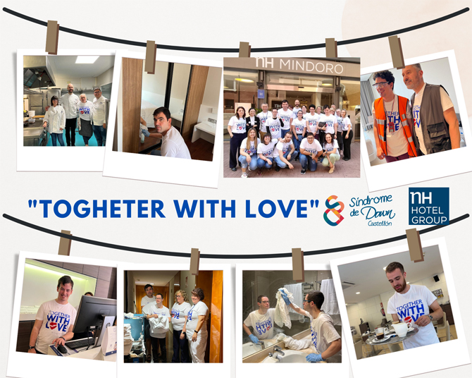 Los hoteles NH Mindoro y NH Turcosa han organizado la jornada “Togheter with Love” en la que 8 alumnos y alumnas del Curso de Transición a la Vida Autónoma que se realiza en la Fundación Síndrome de Down de Castellón han podido ser “trabajadores y trabajadoras”, durante un día, en diferentes puestos de trabajo y realizar las funciones y tareas propias de las diferentes profesiones que se desempeñan en un hotel.