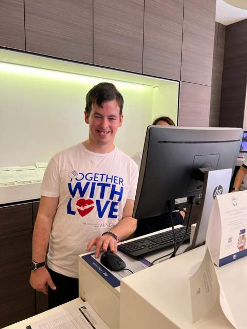 Carla, Alejandro o Pablo han sido algunas de las personas que han participado en la jornada. “me ha gustado mucho el poder atender a clientes en la recepción ya que me gusta mucho ayudar cuando alguien tiene alguna duda” comenta Carla.