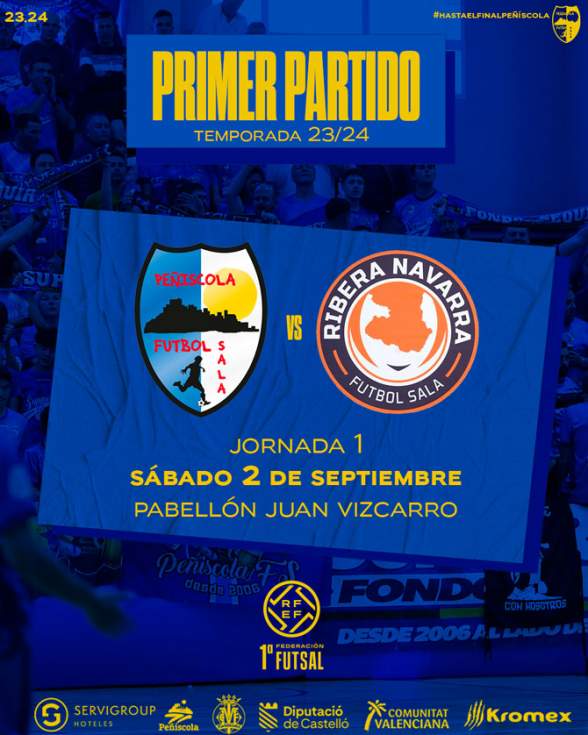 El Servigroup Peñíscola se enfrentará al Tudelano Ribera Navarra en la Jornada 1 de la Primera Federación Futsal 2023/2024. El conjunto peñiscolano ya conoce a su primer rival en la temporada del regreso a la máxima categoría del fútbol sala español tras el sorteo del calendario realizado este martes por la Real Federación Española de Fútbol. El partido que abrirá la temporada oficial liguera para los de Santi Valladares se disputará en el Pabellón Juan Vizcarro de Peñíscola el sábado 2 de septiembre.