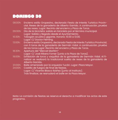 El concejal de Fiestas, David Juárez, ha explicado que la programación se ha diseñado "pensando en la gente de todas las edades, para ofrecer un abanico de actividades diverso y que haga disfrutar a todas las personas del municipio de la semana grande de Oropesa". Así, la diversión está asegurada para todos durante estas celebraciones.