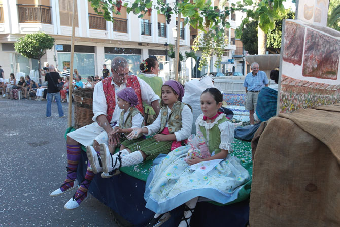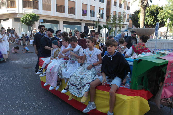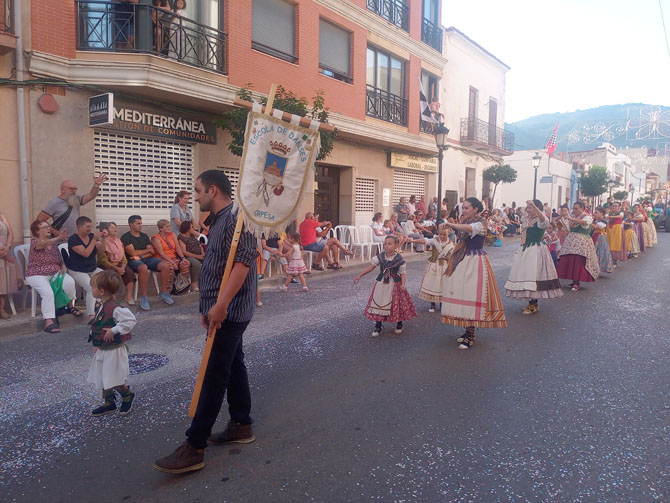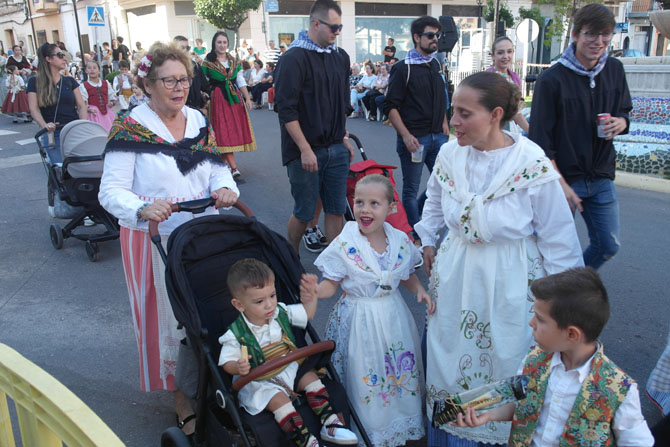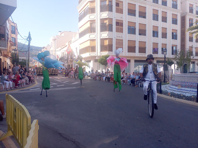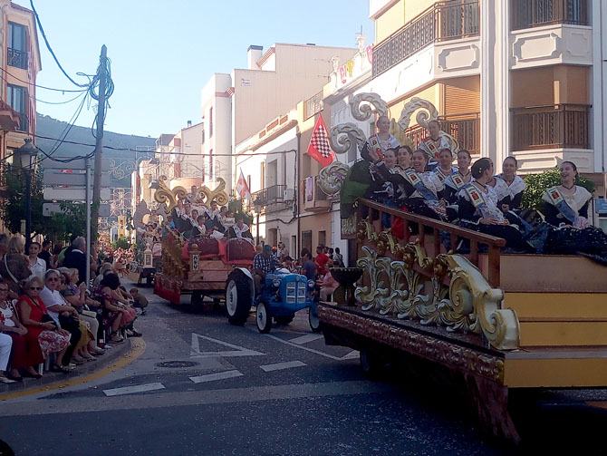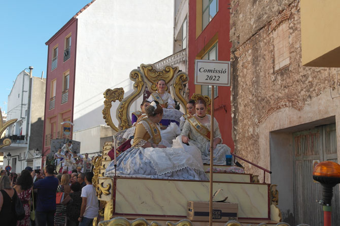 Las calles de Oropesa se vistieron de música y color durante el Pregó de festes, con las actuaciones musicales y de baile de las distintas asociaciones locales. Nueve carrozas desfilaron por las calles, lanzando confeti y caramelos, lo que añadió un toque mágico al ambiente festivo. Entre los participantes que se unieron a pie, destacaron los "Cavallers de la Conquesta" y los grupos de "Moros y Cristianos". Luis Peris Bodí, montado a caballo, fue el encargado de leer el Pregó frente a la tribuna de las autoridades, ubicada frente a la nueva biblioteca.
