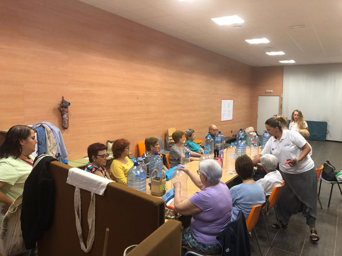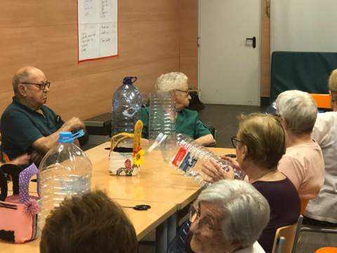 Durante esta interacción, las educadoras ambientales se enfocaron en un tema de importancia creciente: el consumo excesivo de plástico. Además, llevaron a cabo un taller que promovió la reutilización de este material. Los usuarios del Servicio de Promoción de la Autonomía Personal de Santa Magdalena participaron activamente en esta actividad, en la cual, utilizando botellas de plástico, crearon prácticos cestos reutilizables ideales para sus compras.