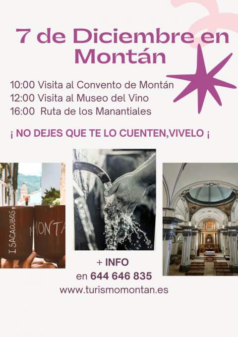 - Jueves 7 de diciembre: Tres visitas guiadas al Convento de Montán, al Museo del Vino y la Ruta de los Manantiales.