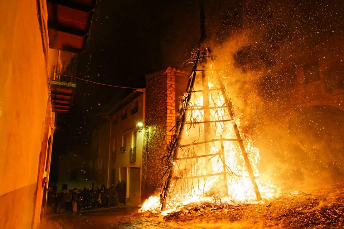 El sábado inició con la construcción de la gran barraca, sostenida por un pino central conocido como "mayo". Las costillas fueron colocadas sobre el pino que se erguía en la plaza. Posteriormente, el esqueleto de troncos fue cubierto con la leña recolectada por todos los voluntarios y voluntarias del pueblo La colaboración entre la Colla l'Empastre, Beerwinkel PP y el Ayuntamiento fue clave para llevar a cabo esta celebración que sigue el ciclo de Sant Antoni en Els Ports.