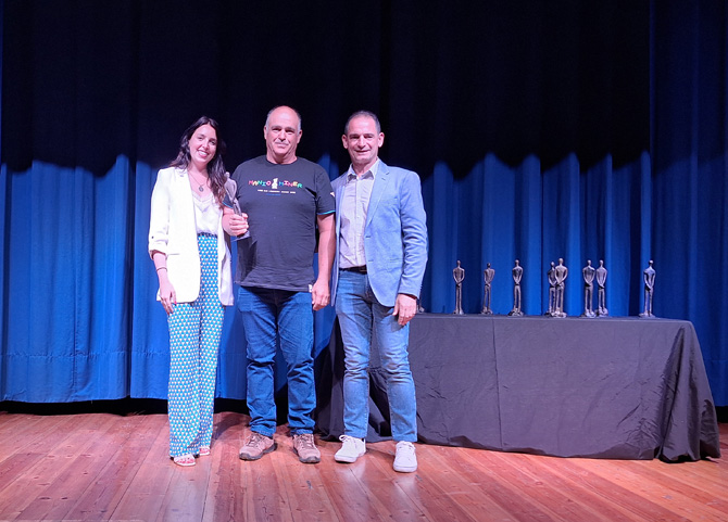 Miguel Marín, socio destacado de la Asociación de Caza El Lince, se especializó en la caza de pato con perro. Era común verlo en su moto con el perro en el cajón. Su hijo recogió el reconocimiento.