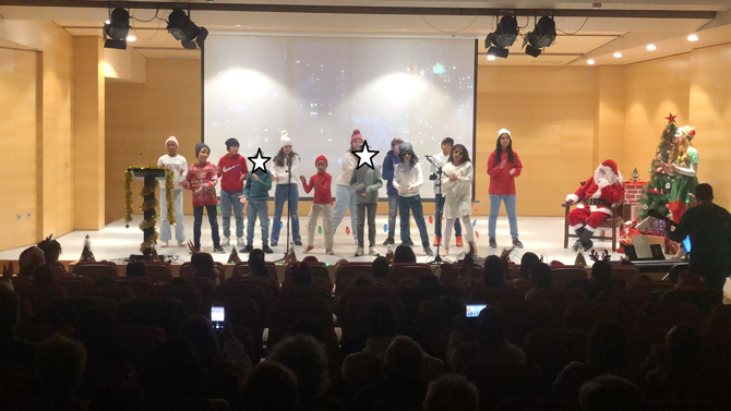 En el auditorio, los estudiantes y el equipo docente ofrecieron una destacada actuación musical, con piezas especialmente compuestas para la ocasión por el maestro de música, Joan Ortega Segarra. La representación cautivó al público, que llenó el auditorio para disfrutar de este espectáculo navideño.