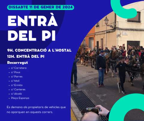 Las celebraciones comenzarán el sábado con la tradicional entrada del Pino de la Hoguera de Sant Antoni. A las 9:00 h habrá una concentración de caballos en el Hostal y, posteriormente, un almuerzo en la ermita de Sant Vicent. La entrada del pino, uno de los momentos más esperados, se realizará a partir de las 12:00 h recorriendo las principales calles del casco urbano.