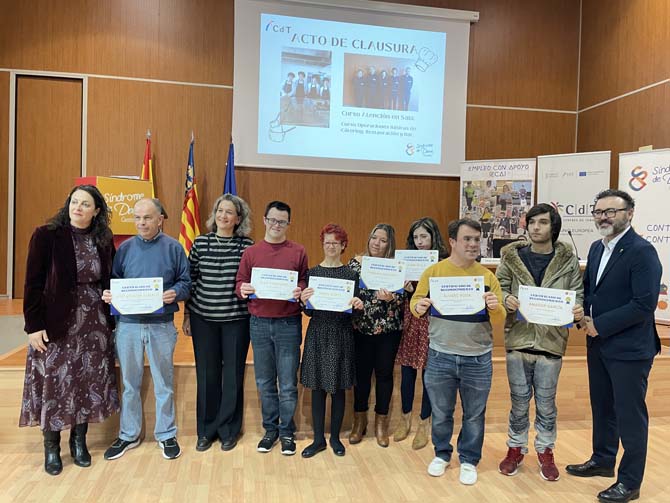 Ocho jóvenes con síndrome de Down y otras discapacidades intelectuales han celebrado su graduación en los cursos de Atención en Sala y Operaciones Básicas de Cátering, Restaurante y Bar, realizados en el Centro de Turismo de Castellón. La entrega de diplomas fue presidida por Israel Martínez director general de Turismo.