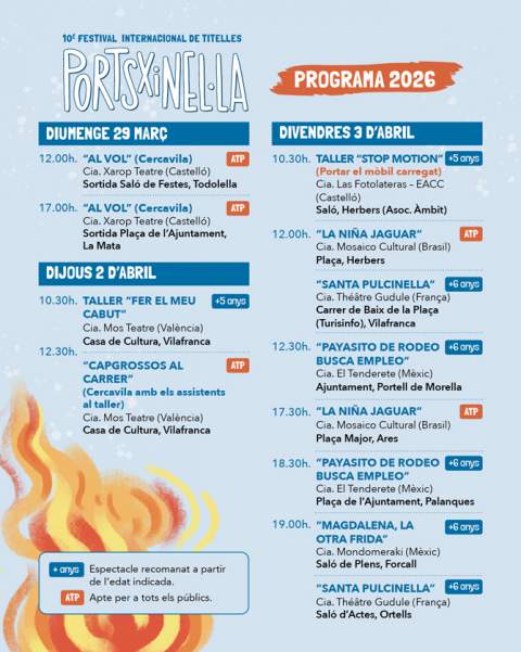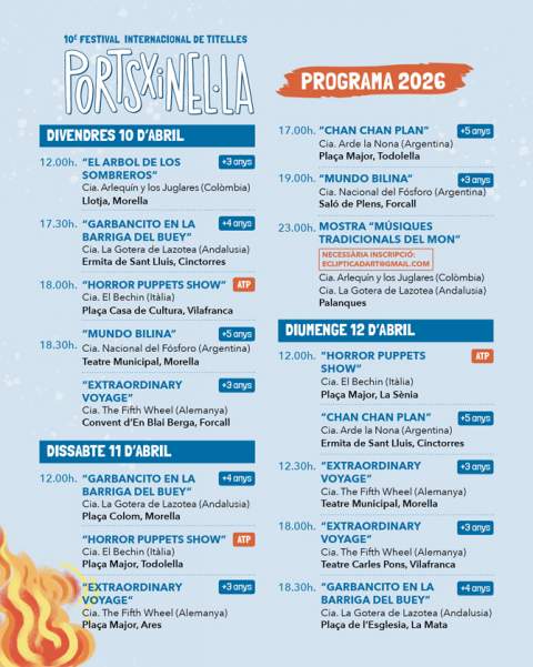 La décima edición del Festival Internacional de Titelles Portsxinel·la volverá a llenar de creatividad y cultura la comarca de Els Ports (Castellón) entre el 29 de marzo y el 12 de abril de 2026. El certamen propone este año una mirada innovadora que une dos universos visuales de muy distinta antigüedad: el teatro de títeres, con más de 3.000 años de historia, y las tecnologías audiovisuales más contemporáneas.