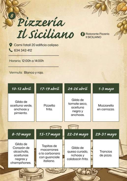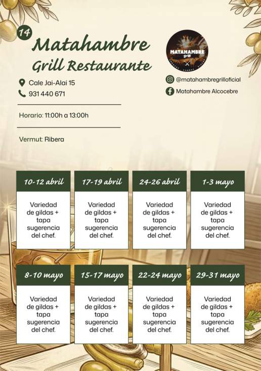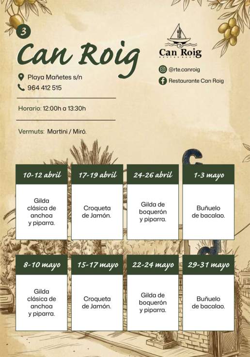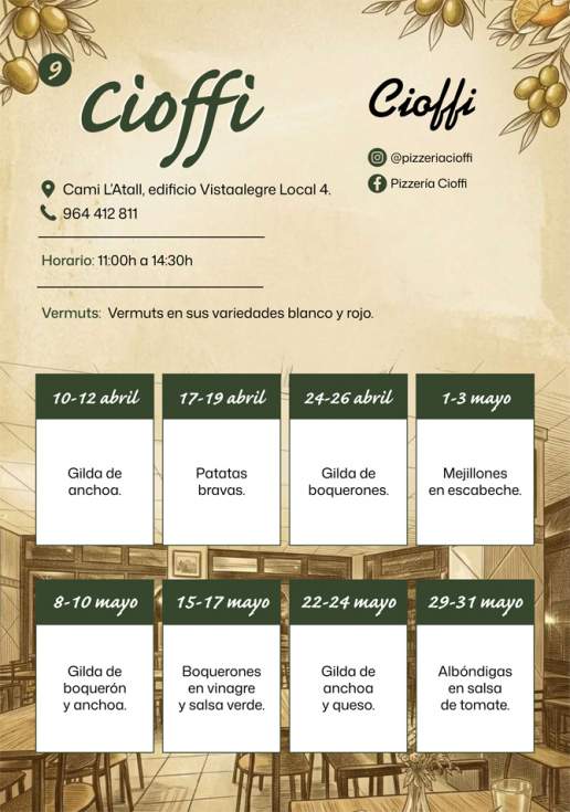 La ruta se celebrará durante los viernes, sábados y domingos, y contará con la participación de 14 locales del municipio, que ofrecerán a vecinos y visitantes una propuesta compuesta por vermut acompañado de tapa o gilda por un precio único de 4,50 euros.