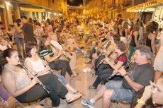 La agrupación musical Santa Cecilia interpretó los diferentes pasos del Ball Pla. La banda de música acostumbra a ubicarse en el centro de la Avenida. Las parejas la van rodeando para iniciar el baile. El sonido del tambor va marcando el avance de las parejas. Los quintos, damas y la reina de las fiestas, Berta Mas Agut, se ataviaron con el traje tradicional para danzar. Antes de las fiestas de agosto estuvieron ensayando durante varias semanas.